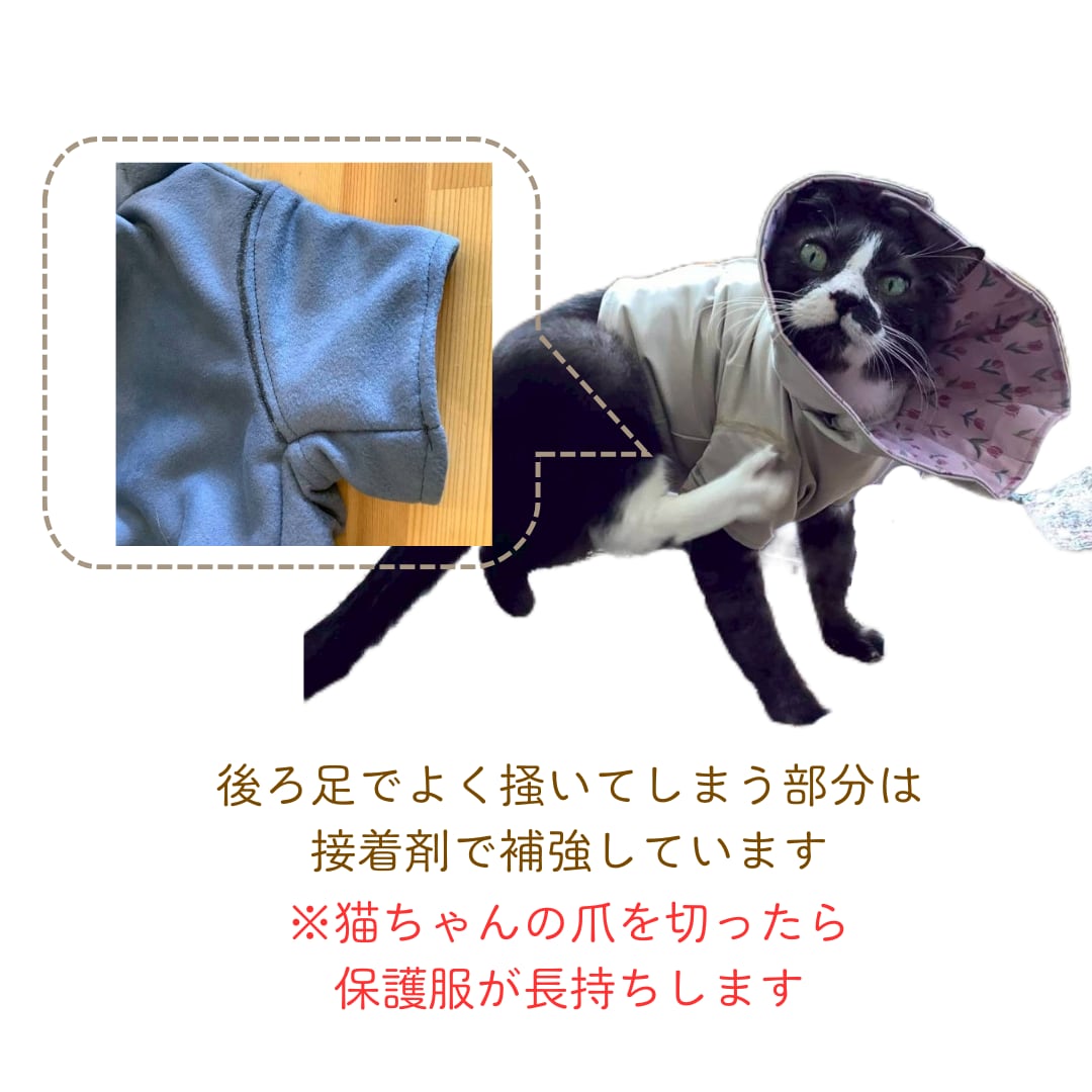 皮膚病やアレルギーで皮膚に痒みを感じたり、皮膚を保護したい猫用の保護服です。
