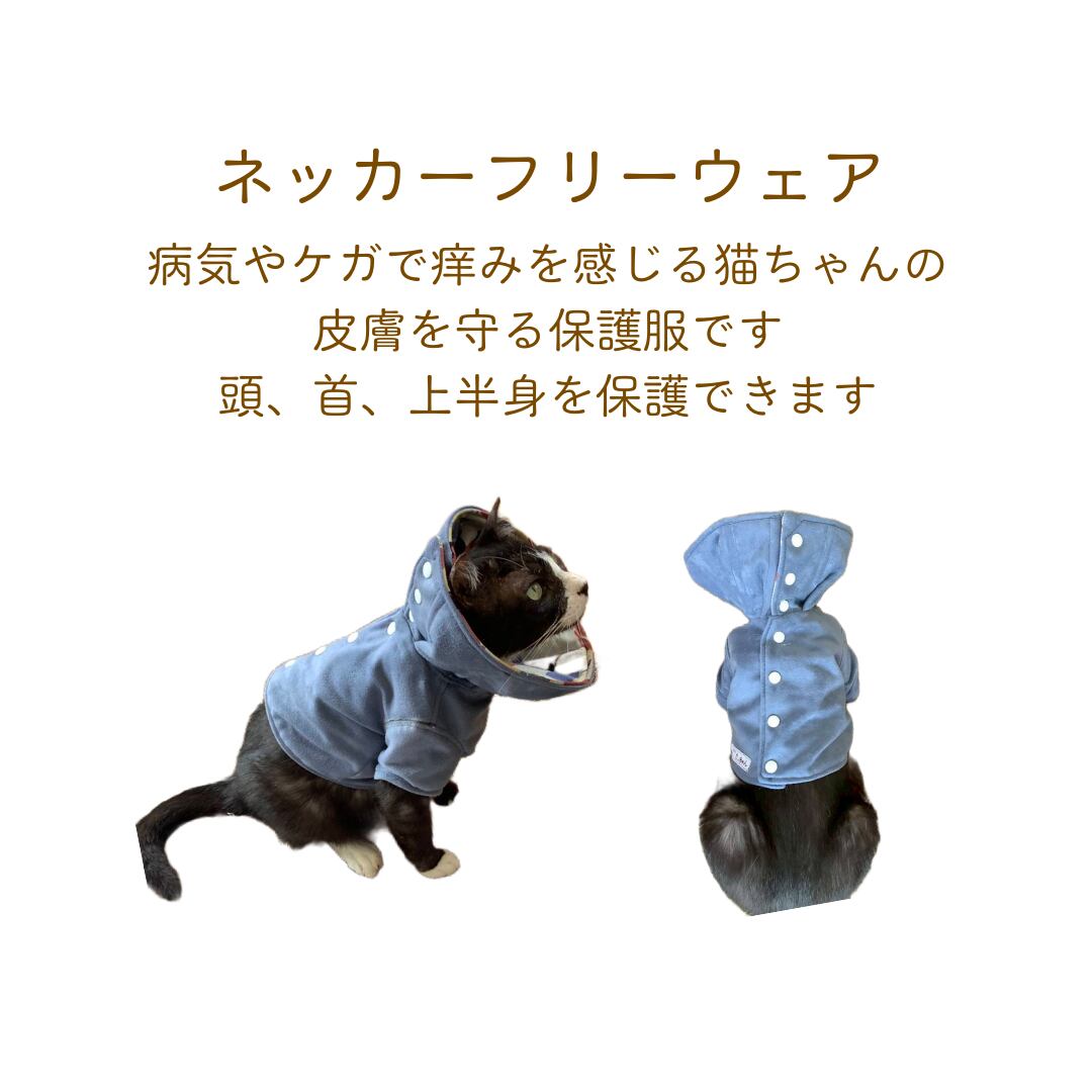 皮膚病やアレルギーで皮膚に痒みを感じたり、皮膚を保護したい猫用の保護服です。